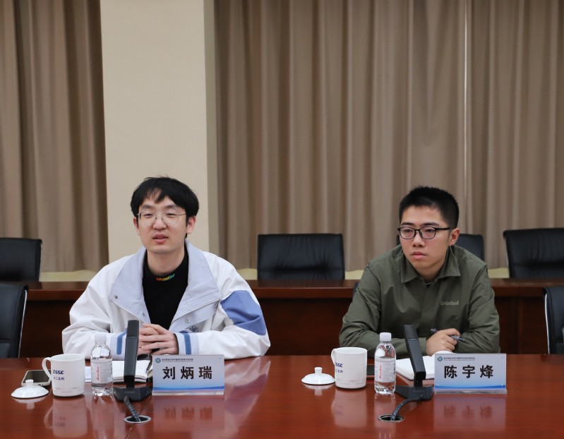 董成成主管向与会人员简要介绍中船青岛北海造船公司历史沿革、目前发展情况及未来发展战略,公司已经实现船舶材料供应、设计、制造一体化,正向着业务涵盖领域更广、生产更加绿色的方向发展;同时公司希望进引入浙大的优秀人才,助推信息化、现代化建设;李小强副所长详细介绍了船研所的部门组成、人员需求及发展战略。同学们全神贯注地聆听讲解,并针对感兴趣的问题向与会领导请教,活动现场气氛逐渐热烈。