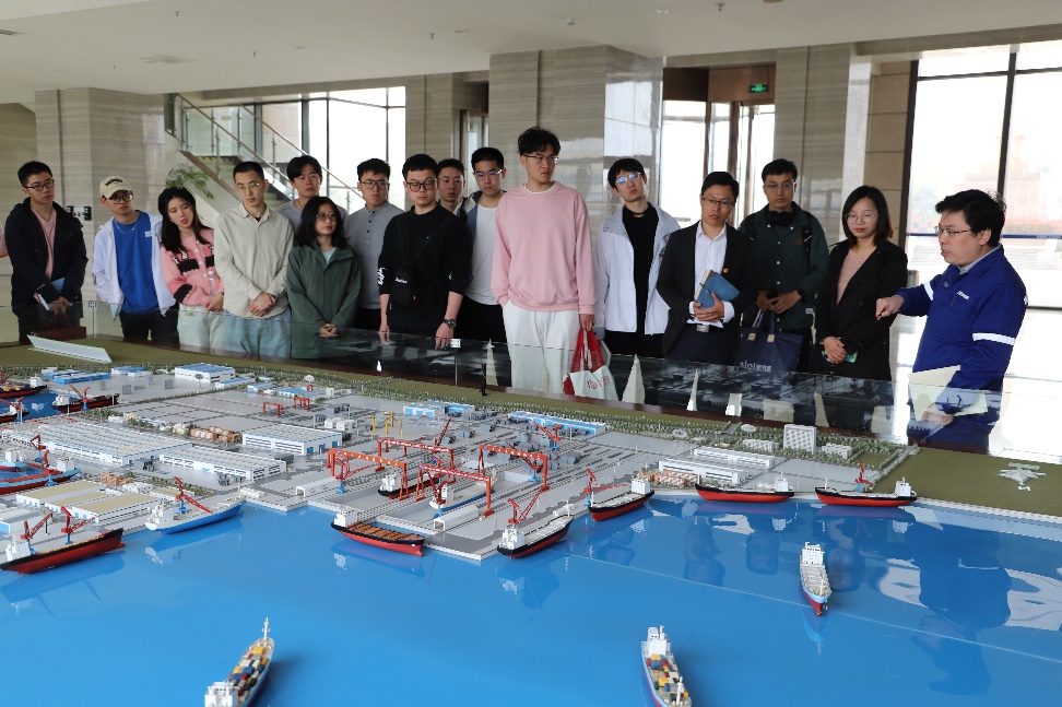 4月20日,参访团师生一行来到位于青岛海西湾的中国船舶集团青岛北海造船有限公司。在船研所副主任设计师许周喆带领下参观了北海造船公司展厅,详细了解公司造船、修船的各步骤及厂区内公司生产布局情况。