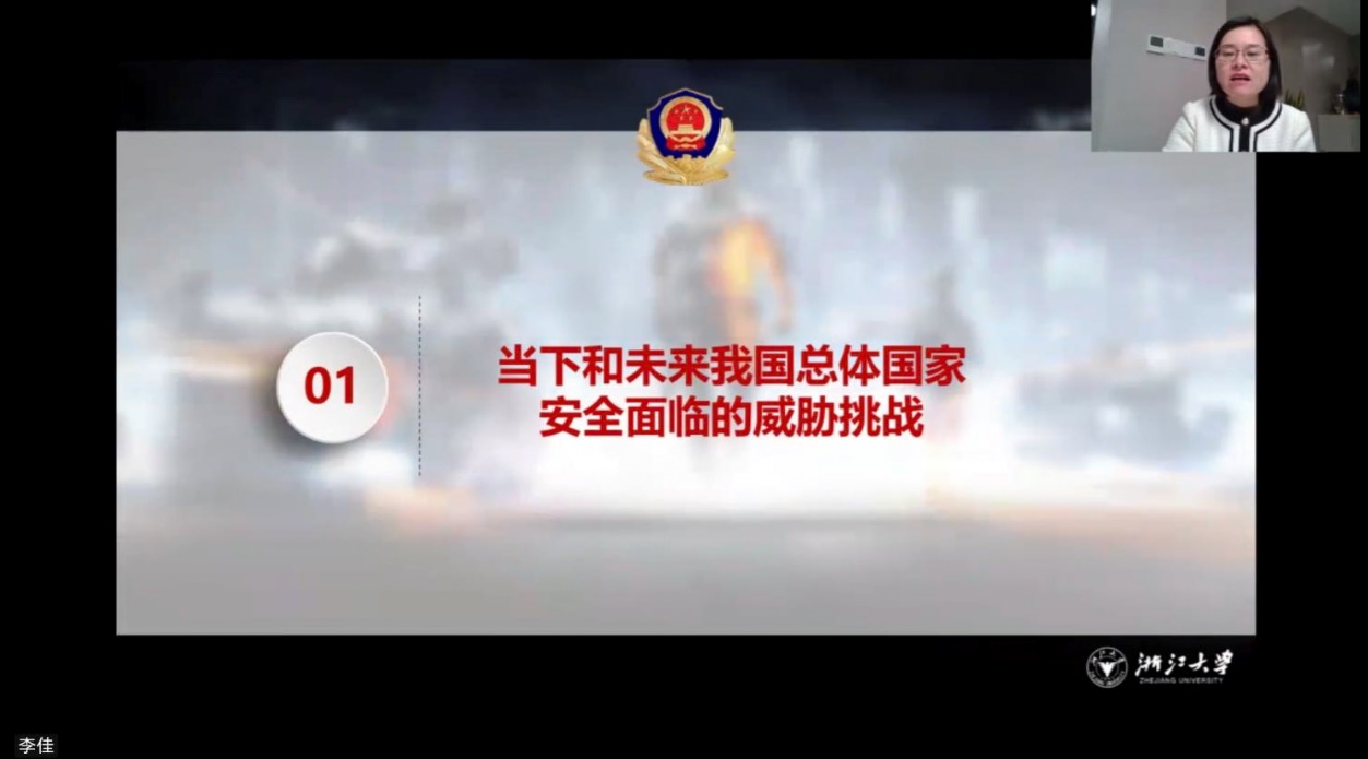 李佳教授接着开展了《坚定不移贯彻总体国家安全观》的主题宣讲。李老师首先点明国家总体安全观在二十大报告中的重要内涵,详细分析了我国当下和未来所面临的各种安全威胁,指出我国总体国家安全面临威胁的应对体系仍存在短板,呼吁广大师生党员要增强自身忧患意识,坚决捍卫国家安全。