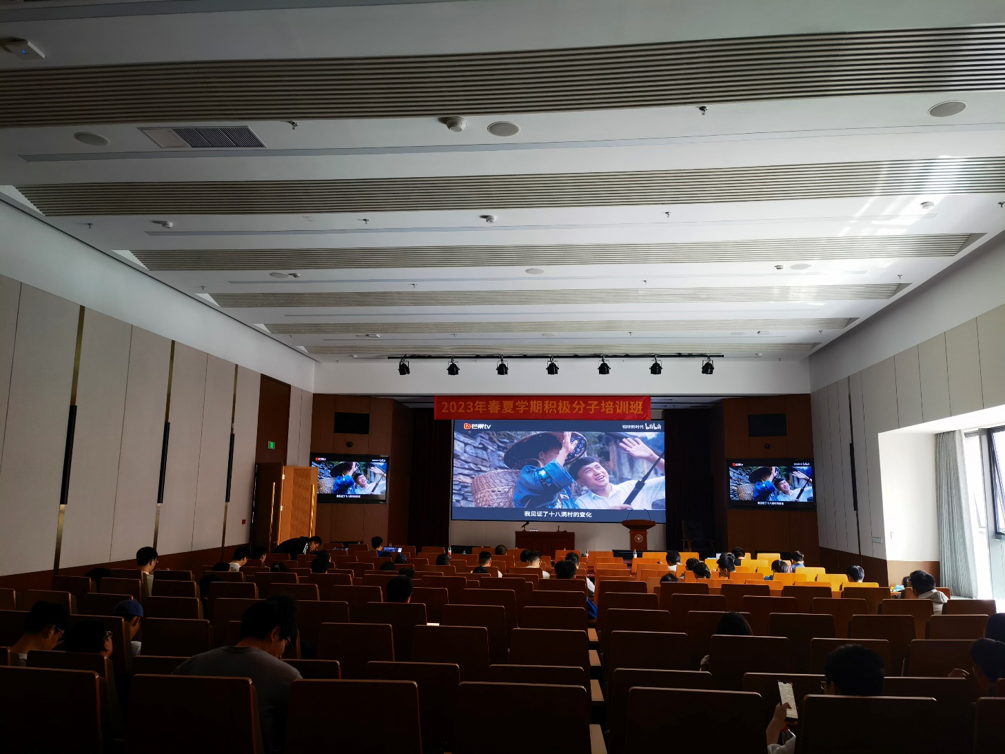 下午,影视课《这十年》系列纪录片讲述了:在新时代中国特色社会主义思想的引领下,各行各业的劳动者不断锐意进取,开拓创新,在自己的岗位上发光发热的感人故事。其中有定期为老人体检的乡村医生,有追求极致的高科技领域工作者,也有为自己家乡带来财富的返乡创业青年……他们在平凡的岗位上追求不平凡的成就,争做新时代的追梦人,深深鼓舞着各位入党积极分子努力奋进。