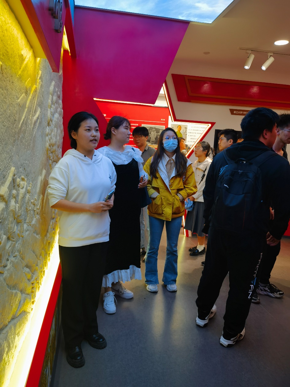 在实践教学环节,入党积极分子集体参观浙江大学马兰精神展厅。马兰精神展厅位于浙江大学机械工程学院内,讲述了马兰基地的起源、一代代浙大马兰人物故事、全军挂像英模林俊德院士的卓越贡献与感人事迹以及马兰工作室的初心与成果。“艰苦奋斗干惊天事”概括的是马兰人以苦为乐、发奋图强的进取精神以及铸国防盾牌、挺民族脊梁的担当气魄;“无私奉献做隐名埋姓人”彰显的是马兰人无私奉献以身许国的价值准则和淡泊名利甘愿牺牲的高尚情怀。同学们从先辈的宏伟事迹中收获颇多感悟,有人感慨想要办成大事就一定下足工夫,有人表示要以先辈为榜样,做到一份力就要发一份光。