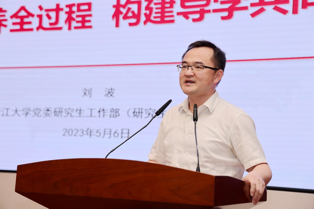 刘波为与会人员作《关注培养全过程,构建导学共同体》的主题报告。他指出,当前我国研究生教育在科技自立自强、拔尖创新人才培养中发挥着重要作用,但结合目前学校研究生教育工作来看,仍存在许多方面的问题。他以如何处理研究生退学问题为切入点,从马斯洛需求理论出发,探讨了如何协调多种育人载体,建立相融互促、教学相长的导学共同体,最终实现培养高层次拔尖创新人才和领导者的目的。