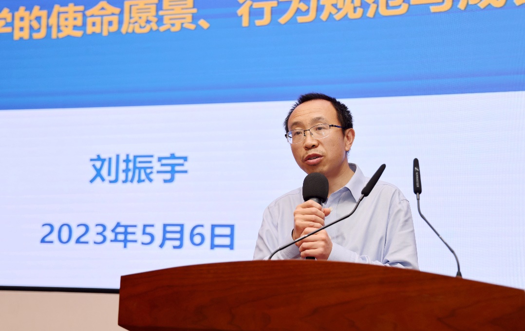 刘振宇首先代表学院向本科生院和研究生工作部对学院教育教学工作的支持表示感谢,并作《青年教师教育教学的使命愿景、行为规范与成长路径》的主题报告。他从教育教学工作的意义、规定和要求出发,讲解了青年教师的教学成长路径, 希望通过价值引领制度建设和资源的投入,让每一位老师都能认真上好每一堂课、带好每一位学生,在科研取得成绩的同时也能做出一流的教学亮点,提升学院整体人才培养水平。