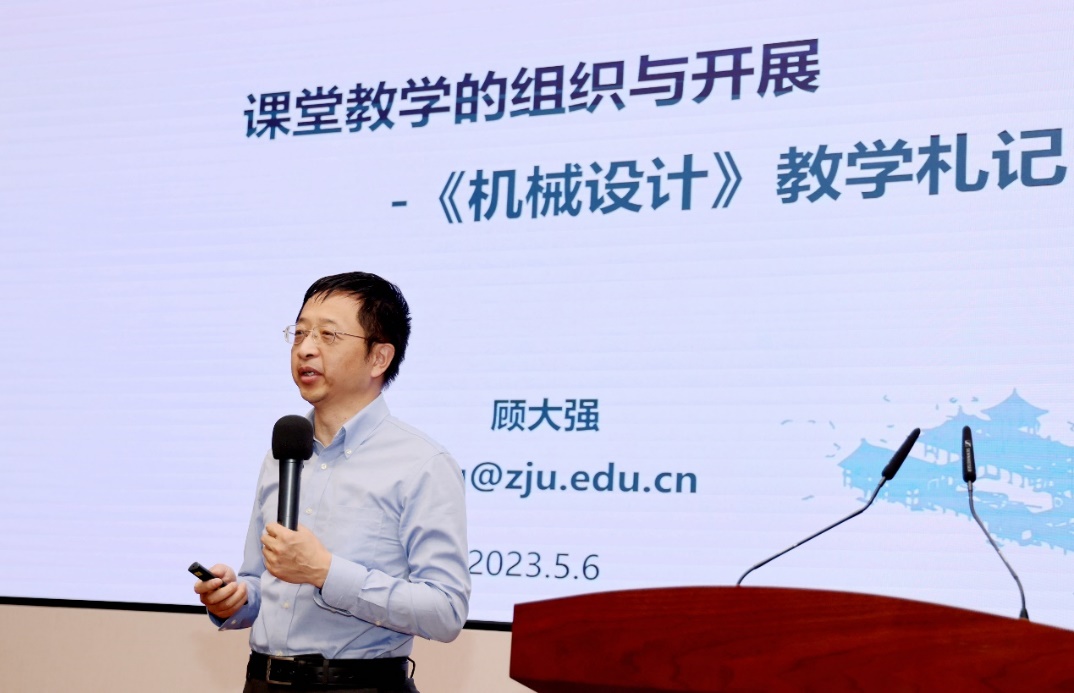 顾大强为与会教师作《课堂教学的组织与开展——<机械设计>教学札记》的主题报告。他从自身30多年来的教学经历出发,结合最新的教育教学理念,总结出10条教学经验:有导入、有全局、有更新、有情怀、有预设、有迭代、有归纳、有展示、有应用,希望未来能有更多的青年教师加入机械设计教学课题组,共同推动学院教育教学工作发展。