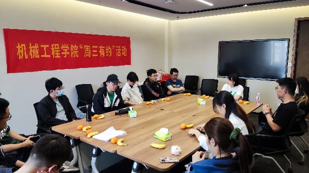 “周三有约”是机械学院心灵驿站工作室品牌活动,旨在通过小组座谈会的方式,为研究生们提供相互交流的平台,增进与学院之间的沟通。目前活动由学院专职心理辅导老师陶意主持,院党委副书记俞磊老师参与指导,每周三中午举行。