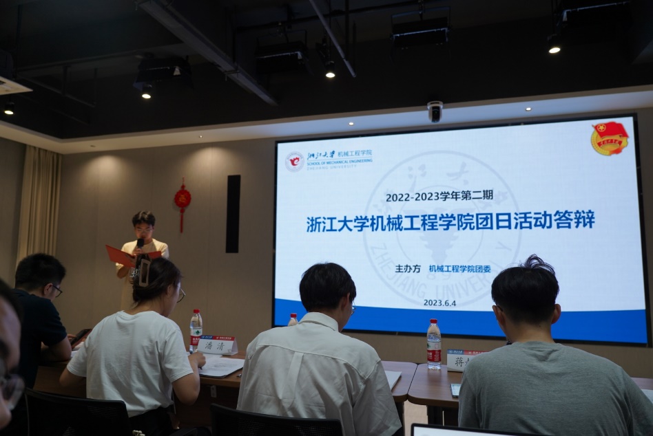 2023年6月4日晚19:00,浙江大学机械工程学院2022-2023学年第二期团日活动答辩通过线上形式举行。出席本次答辩的评委有求是学院蓝田学园分团委副书记潘清、求是学院云峰学园分团委副书记宋祎铁、外国语学院团委副书记蒋赵辉、机械工程学院团委副书记陈宇烽。