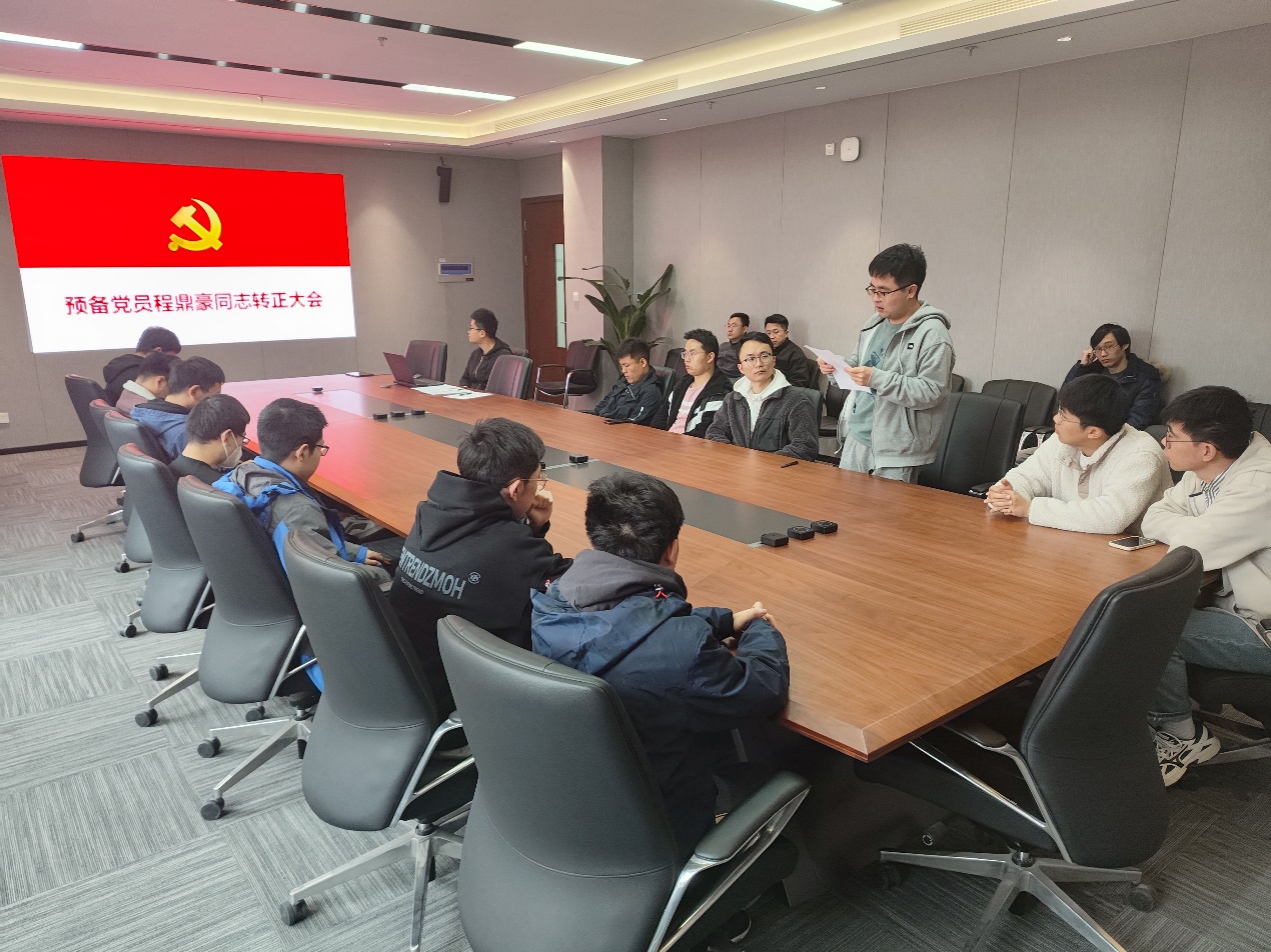 大会第三项,程鼎豪同志宣读党员转正申请书,汇报自己在预备期间的表现,由程鼎豪同志入党介绍人介绍程鼎豪在预备期间的表现情况,经过支部讨论与无记名投票,由支部书记李苏舜宣布程鼎豪同志转为正式党员。