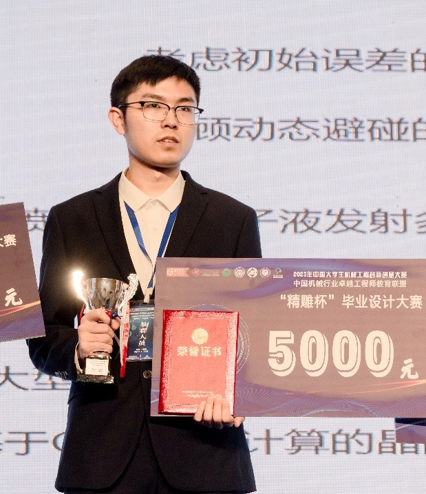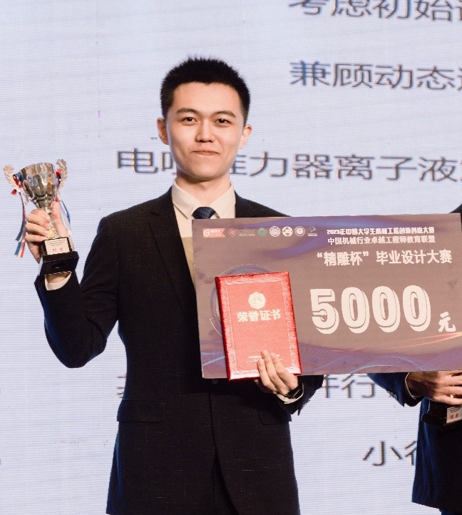 近日,2023年中国大学生机械工程创新创意大赛·中国机械行业卓越工程师教育联盟“精雕杯”毕业设计大赛在重庆大学成功举行。经过激烈的角逐,我院共有9个项目进入决赛,最终获得一等奖4项,其中金奖一项(个人项目全国第一)、银奖三项,二等奖2项,三等奖2项、佳作奖1项、最佳人气奖1项的好成绩!