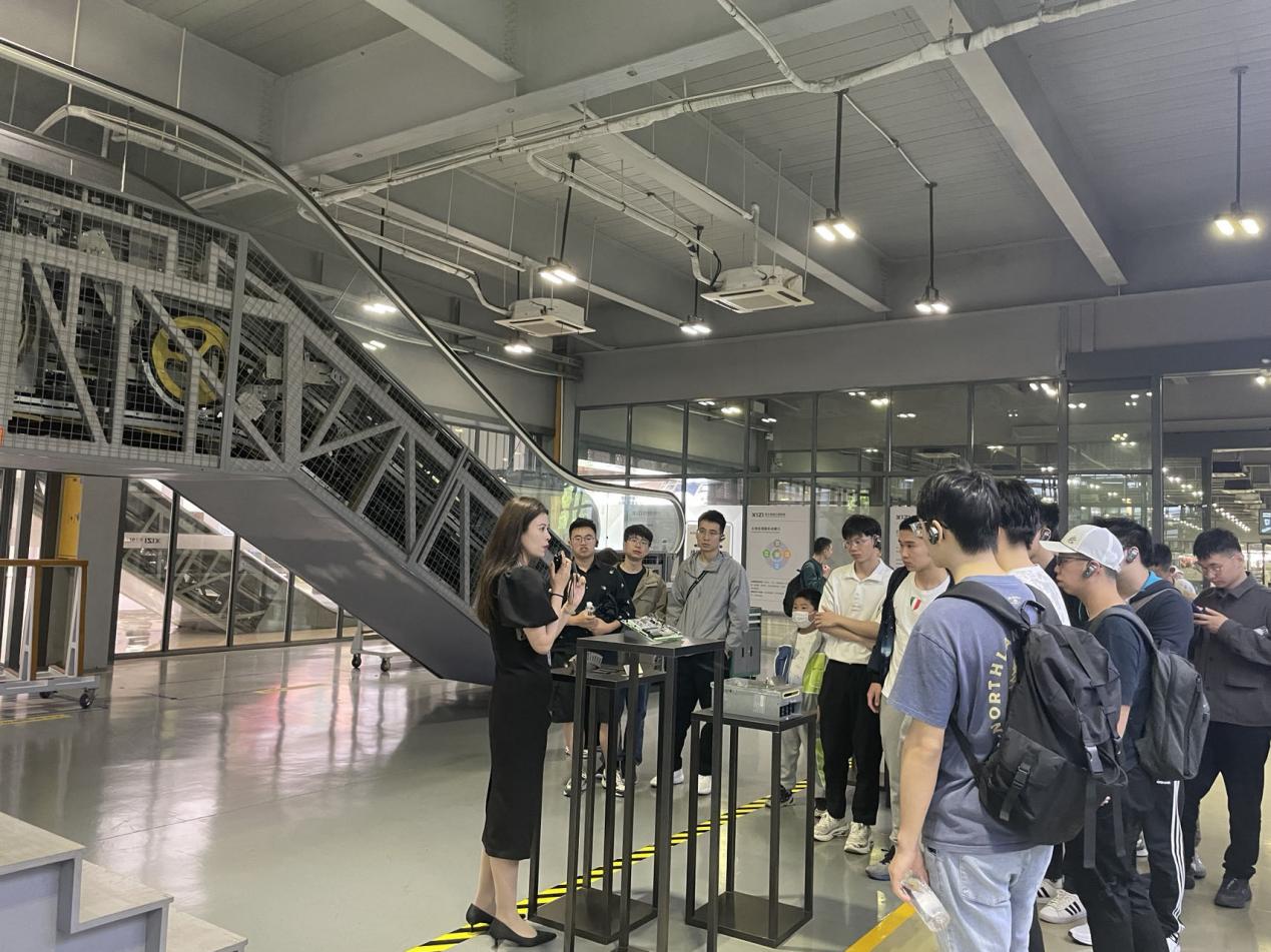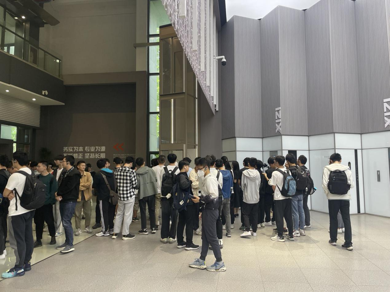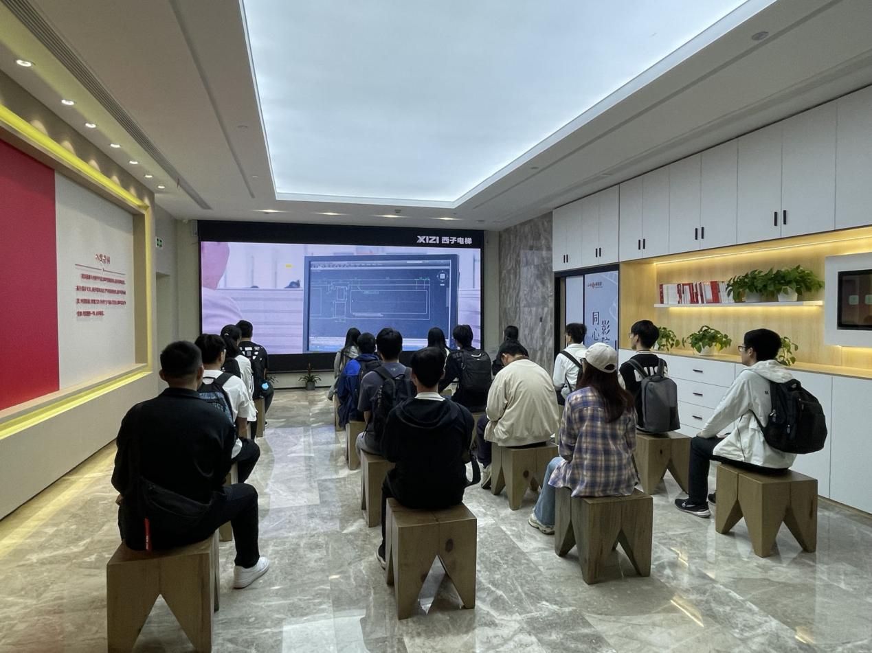 随后,一行人来到西子电梯科技有限公司参观。西子电梯是一家专业的电梯制造商和服务提供商,隶属于西子联合集团。该公司拥有先进的智慧工厂,生产各种类型的电梯、自动扶梯和自动人行道,同时提供安装、维修、改造和检测等服务。在参观过程中,HRBP经理俞斌向师生们介绍了公司的历史、文化、理念和人才培养等方面的情况,并向有意向的同学发出了邀请。师生们在讲解员的带领下,参观了智慧工厂的生产线,感受了精细化管理和现代化制造的魅力,体验了超高速电梯的速度和舒适度,了解了电梯的原理和结构。