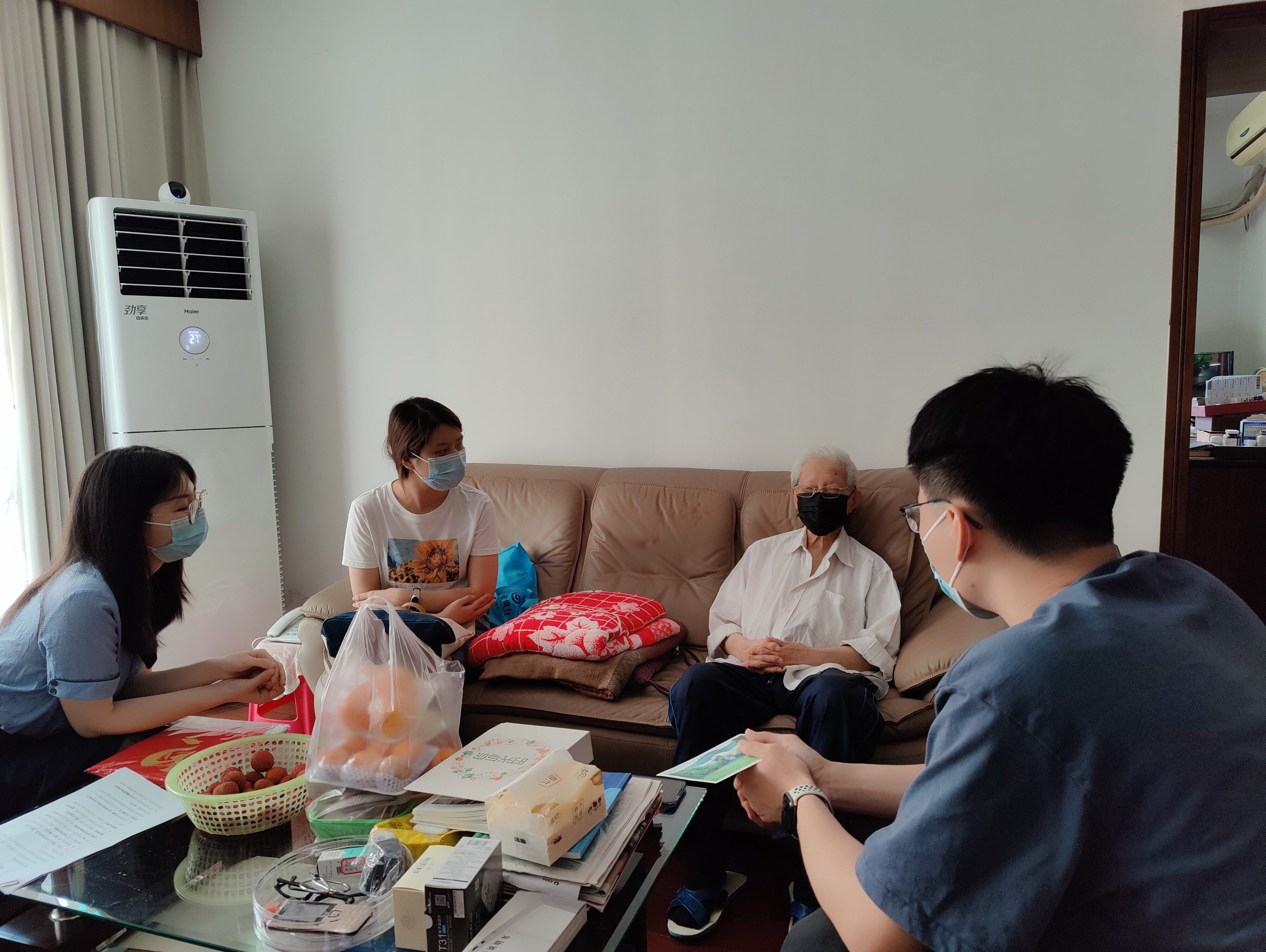 为了不打扰到吴老师午休,我们与吴老师合影之后准备告别,吴老师起身相送,并热情的让我们拿一些水果吃,我们接受了吴老师的好意,并约定不久后一定会再来探望吴老师。临别之际,吴老师向我们表达了祝福与期盼,希望我们支部成员能够刻苦用心,尽己所能,成为对国家、对社会有帮助的有用之才。
