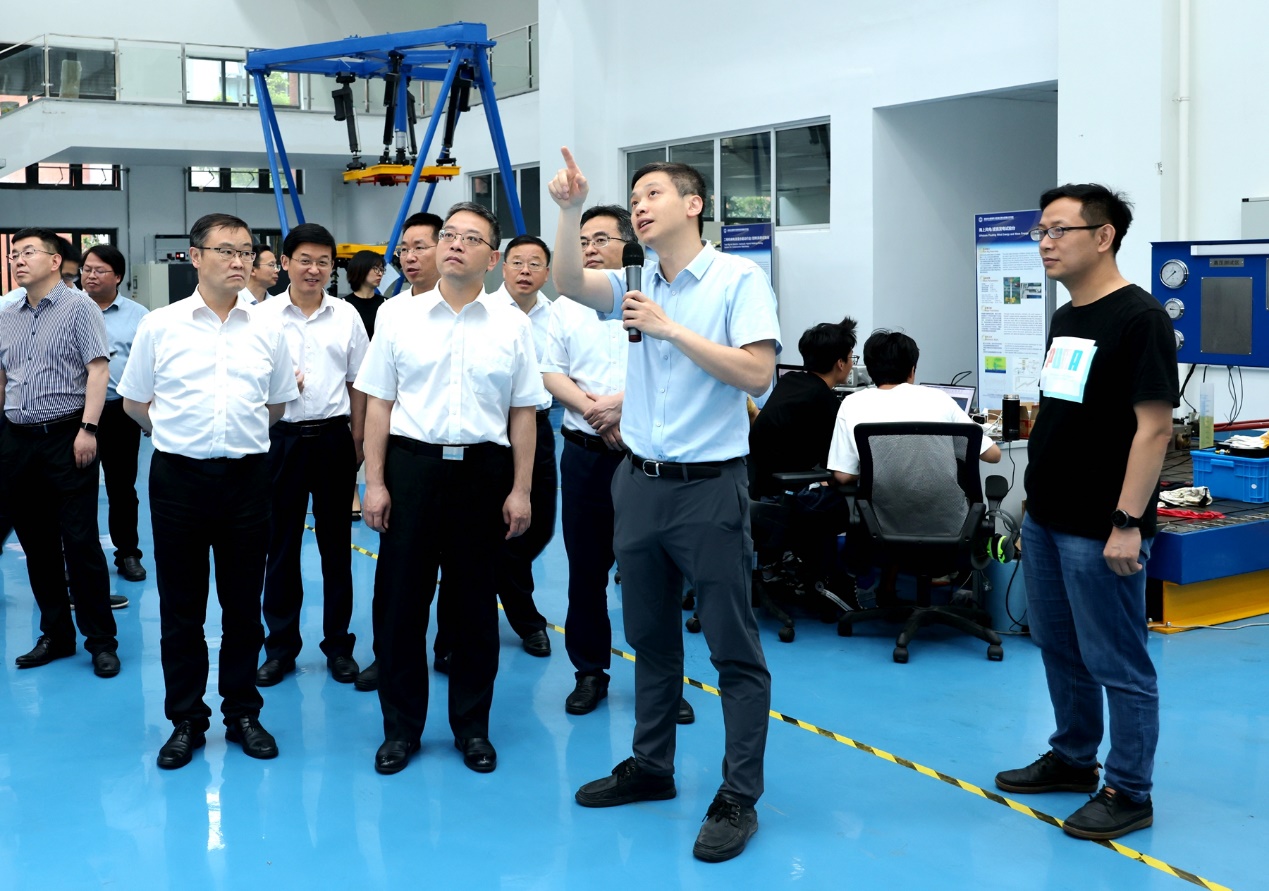 2023年6月16日下午,宣城市委副书记、市长何淳宽一行莅临我院参观交流。浙江大学发展委员会副主席叶民,浙江大学合作办主任兼党办、校办副主任林伟连陪同参观。浙江大学机械工程学院副院长赵朋热情接待了来宾,浙江大学流体动力基础件与机电系统全国重点实验室副主任陈远流、学院党政办主任闫小龙为来宾简要介绍了实验室展厅及车间情况。