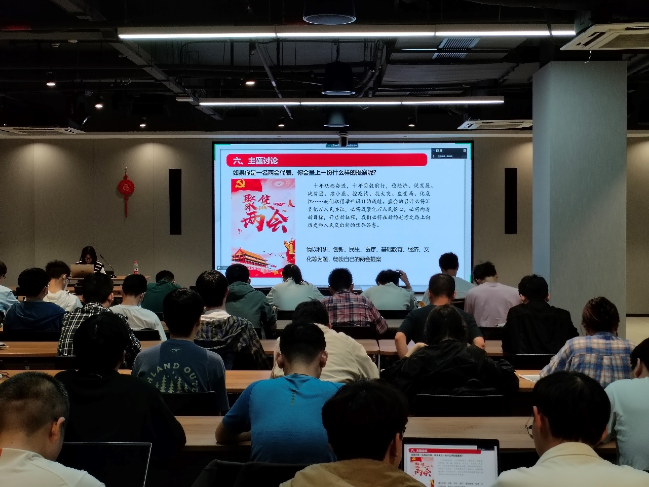 最后全体培训人员观看了《春天里的盛会》两会纪录片,更加深入直观地了解两会内容与精神内涵。学思践悟,以知促行。通过本次主题讨论活动,机械工程学院预备党员和发展对象学习回顾了2023年两会,体悟2022年政府工作成效,把握国家未来发展动向。通过“模拟提案”讨论,引导青年学生深入基层一线,了解并有序参与中国特色社会主义民主政治实践,感悟制度优势、增强制度自信。