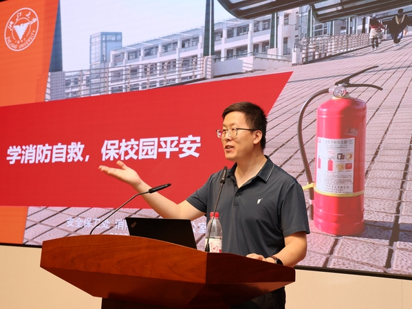 校安全保卫处消防安全管理办公室副主任夏平做了消防专题报告,重点介绍消防工作的重要性、师生常见的防消措施等,通过实际案例提升了学院师生的消防安全意识。现场进行的互动让师生们亲身感受到了当火灾发生时要注意的要点。