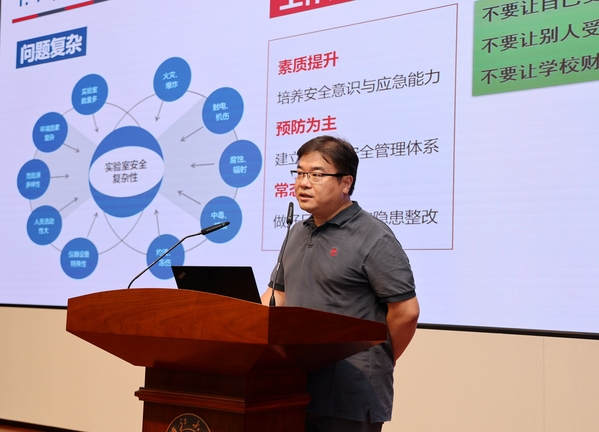培训邀请到了校实验室与设备管理处实验室技术安全管理办公室副主任樊伟、校安全保卫处消防安全管理办公室副主任夏平做专题报告。