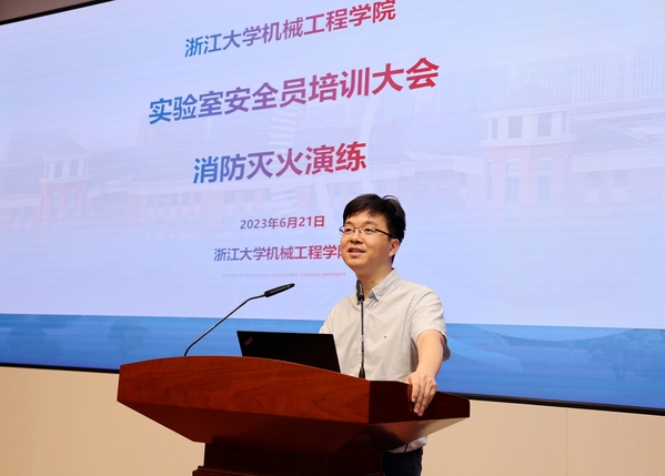 培训会于2023年6月21日上午9:30在开物苑报告厅开始。学院分管安全工作副院长赵朋、制造所党支部书记何闻、工业工程研究所副所长杨辰龙、学院实验室安全主管潘善洪、各研究所实验室秘书以及50多位实验室安全员参加了培训和演练。培训会由张凯主持。
