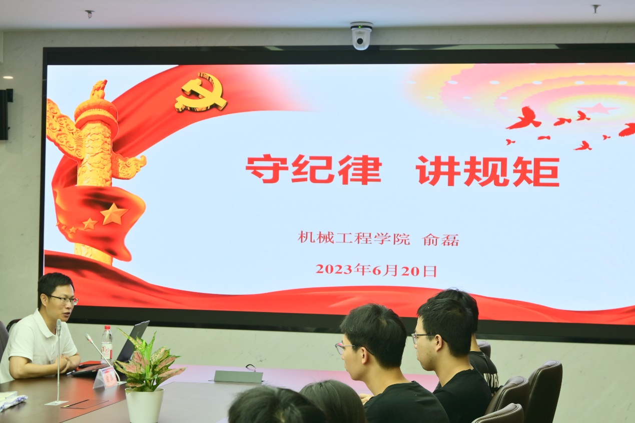 为进一步加强毕业生党员严格自律的党性觉悟,端正党员思想,强化底线思维,引导毕业生党员以崇廉实干、踔厉奋发的精神面貌开启走向工作岗位的新征程,2023年6月20日,浙江大学机械工程学院集中开展夏季毕业生党员离校教育暨廉洁教育专题活动。机械学院党委副书记俞磊,团委书记金娟霞出席本次活动。