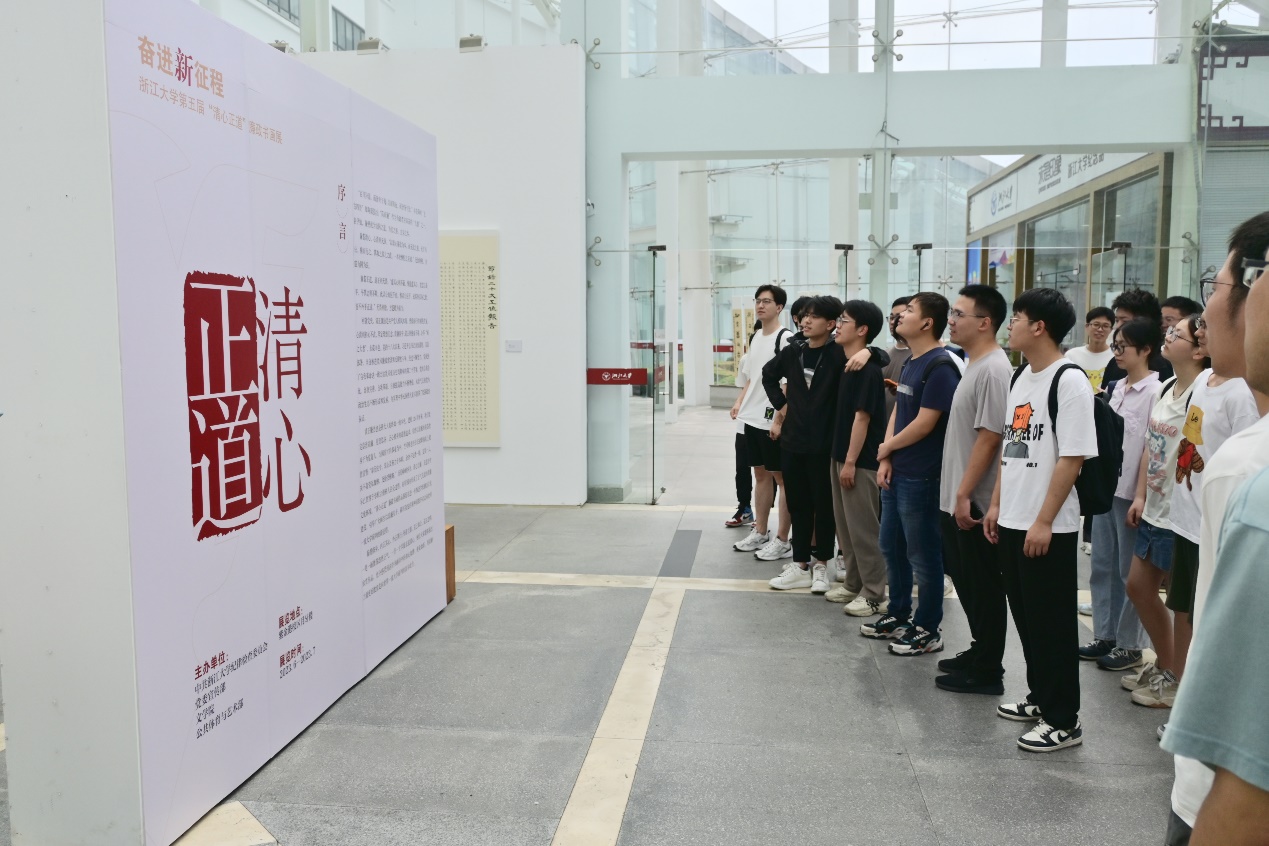 清风扬正气,奋进新征程。毕业生党员们一同参观了浙江大学第五届“清心正道”廉政书画展。廉政书画展以书言志、以画寄情,饱含了对廉洁文化的独特情感和艺术理解,阐释了清正廉洁的丰富内涵和时代价值。引导毕业生党员们坚持求真务实、清正廉洁。