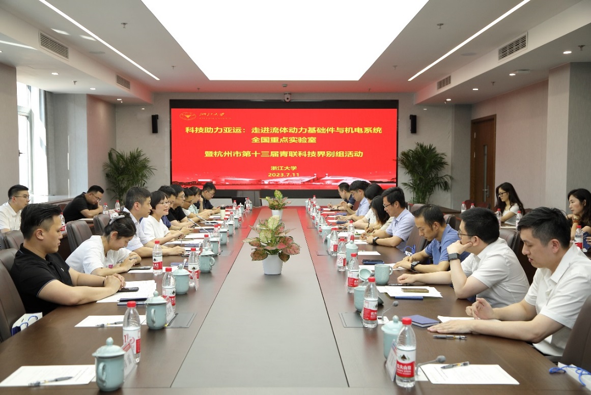 7月11日下午,杭州市青联科技界别组活动在浙江大学紫金港校区开物苑召开。30余名市青联委员参加了本次“走进流体动力基础件与机电系统全国重点实验室”暨“青联大讲堂”活动。团市委副书记、浙江大学团委副书记马君雅,市青联副主席、实验室副主任陈远流作为东道主接待了各位青联委员。浙江大学机械工程学院党委副书记俞磊出席活动并致欢迎辞。