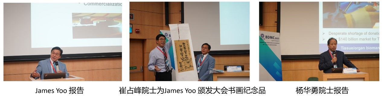 第一个特点:本次大会所邀请的学术报告人学术背景厚重,十个报告的信息量就如一场学术盛宴,吸足了与会者的眼球与脑容量。如第一个报告人为国际生物制造学会前主席,美国维克森林大学健康与再生医学研究所的James Yoo教授,报告题目为Support Technologies that Enhance Clinical Translation,他详细介绍了研究团队将生物制造技术在临床转化研究中的应用,给听众留下深刻的印象;紧接着大会主席杨华勇院士作了题为Biomanufacturing of Functional Tissues and Organs:Exploration and Progress的精彩报告,全景式展示了生物制造的发展历程以及浙江大学的相关研究进展。继之,国际生物制造学会主席新西兰奥塔哥大学Tim Woodfield教授进行了题为Engineering Cell-instructive Microenvironments Across Multiple Biofabrication Technologies的报告,详细说明了如何通过多种生物制造技术来实现工程化的细胞微环境构建;上午最后一个大会报告由IJB的主编Chee Kai Chua教授带来,他进行了名为3D Food Printing: The Next Frontier of Additive Manufacturing的报告,为我们详细描绘了3D打印食品的现实进展与美妙远景。