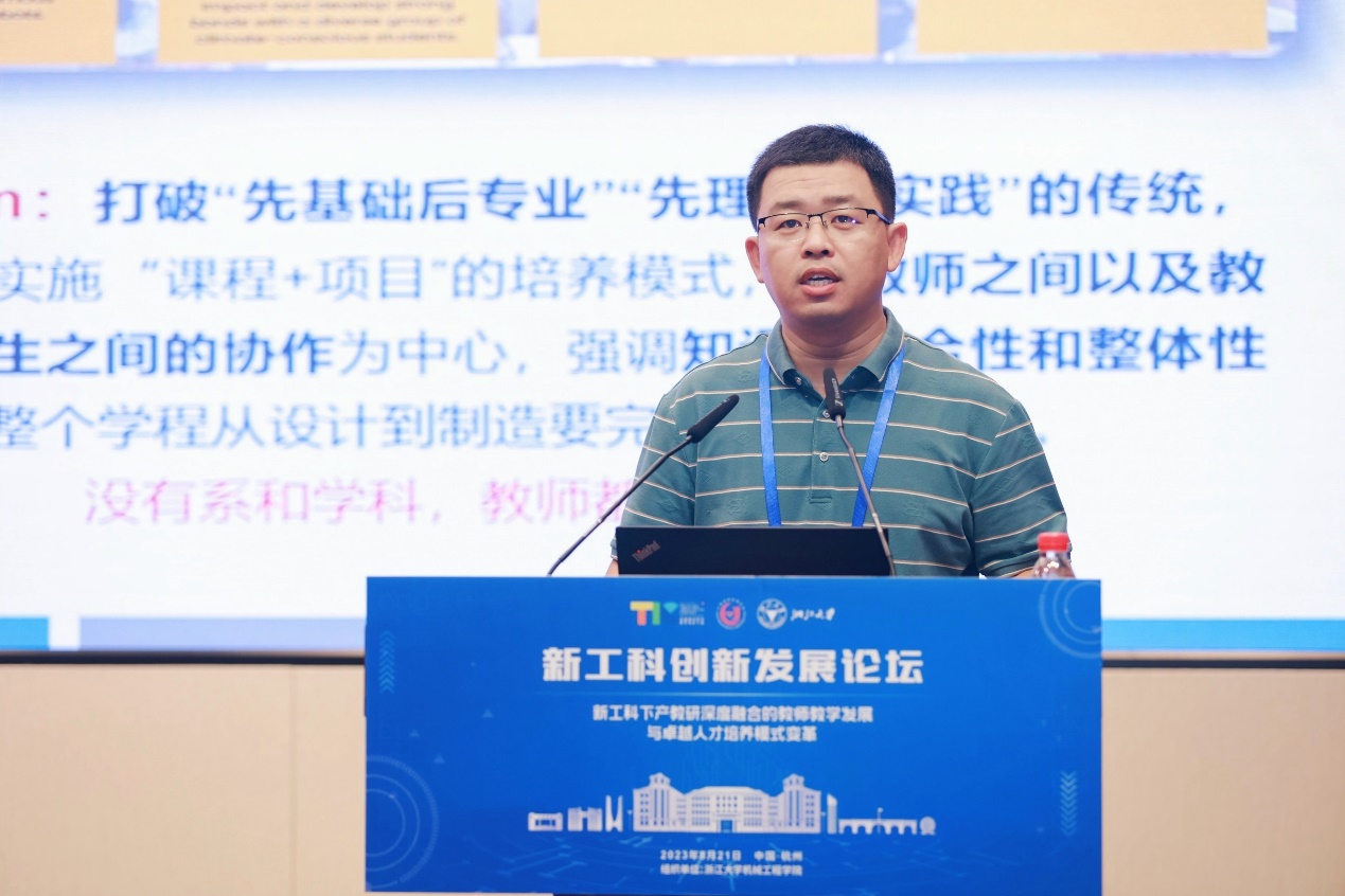 浙江大学机械工程学院副院长刘振宇作题为“机械工程新工科人才创新实践能力培养的探索与实践”的报告。他表示,学院在科教、产教、科艺“三融合”的资源整合,知识、实践、研究“三融通”的能力培养,以及学生发展、科研、实践“三自主”的创新实践平台方面,都做了一系列探索和实践,提升了学生跨领域交叉创新能力。