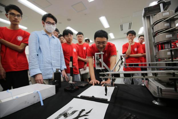 在与高校的交流中,四所高校都展示了各自在机械学科发展最新领域的研究成果。在东京大学的访学过程中,访学团来到山本晃生教授实验室,山本晃生教授及其团队针对触觉传感技术的多种应用方面的研究进程做了主题报告,并带同学们参观了实验室,让大家亲身体验实验室所构建的触觉反馈系统;同时东大机械系的研究生也向访学团展示了他们做的部分驱动装置,大家热情体验、积极提问,对机械工程专业前沿的了解也逐渐加深。