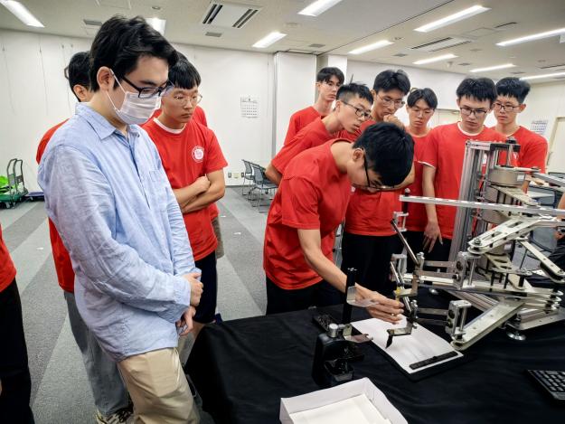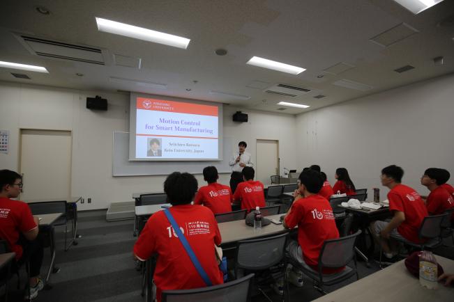 在庆应义塾大学的访学过程中,访学团来到桂诚一郎教授研究室,桂诚一郎教授向同学们介绍了智能制造的运动控制领域的研究,并就控制原理进行详细讲解,之后研究室成员向大家进行现场展示,各个仪器所展现的精准性和灵活性让访学团连连称赞,同学们也积极参与体验,并从控制具体方法和精确性等角度与桂诚一郎教授研究室进行讨论。