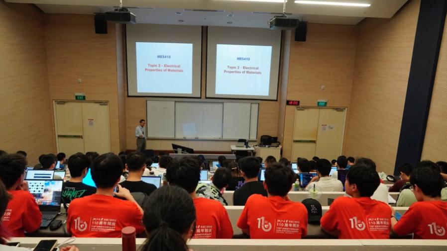 在与高校的交流中,新加坡国立大学交流会上,NUS机械系的曾开阳教授等为同学们简要介绍了机械系的历史、组成、留学生招生方式等基本情况,在读的研究生学长学姐介绍了各自的学术方向、研究生生活以及未来发展计划,现场交流讨论氛围热烈。会后,同学们参观了实验室,亲身体验了NUS的教学课堂,了解了机械工程专业的不同研究领域和研究方向。随后,同学们在带队老师的带领下参观了南洋理工大学的校园,了解了南洋理工大学的历史,感受到了与新加坡国立大学不一样的大学环境与氛围。