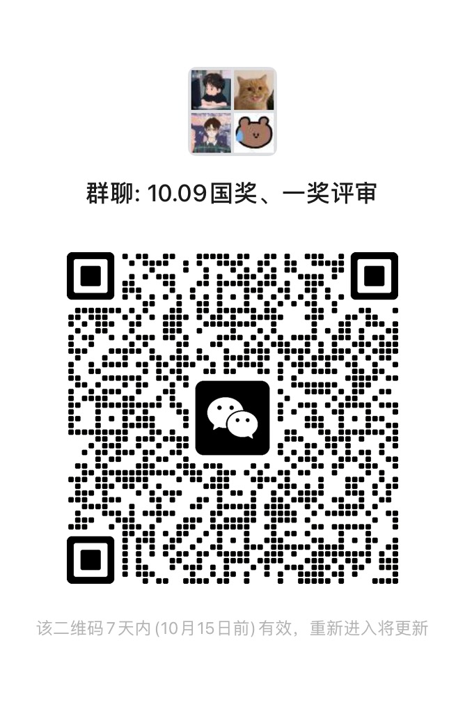 请参加国奖、一奖面试的同学于10月8日15:00前扫码加入微信群,后续面试安排通知将在群内告知。