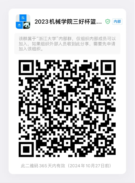 ·有意报名参赛的机械工程学院学生请于11月5日晚上8点前加入“2023机械学院三好杯篮球比赛通知群(见下图1),并填写报名表(见下图2)。