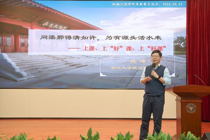 为加强师德师风建设,进一步提高青年教师的教育教学水平与质量,学院于10月23日下午在开物苑报告厅举行青年教师教学能力培训活动。浙江大学航空航天学院教授赵沛,机械工程学院党委书记项淑芳,副院长刘振宇、赵朋,党委副书记俞磊,及学院教学管理委员会委员出席,学院全体青年教师参加活动。活动由学院副院长刘振宇主持。