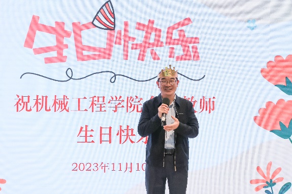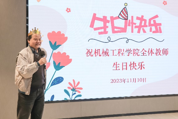 杨灿军老师表示感谢学院组织温馨、欢乐的生日会活动,自己非常开心能够和各个专业的老师共庆生日;巨阳老师感慨自己是第一次参与集体生日会活动,非常感动,这是值得留存终生的回忆,祝各位老师身体健康,工作顺利;余忠华老师表示身为一名机械学院的老教师,感谢学院多年的关怀,希望今后有更多青年优秀教师加入到机械大家庭,为机械发展添砖加瓦;新入职教职工张孙淑怡表示很荣幸加入机械学院,希望之后能够与各位老师继续学习,为各位老师提供更好的服务。