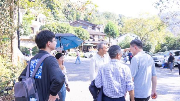 杭州的深秋却是艳阳高照,风景秀丽。阳光将这座古城照得一片翠绿,如诗如画。大家在茶园附近的小路漫步,两侧群山叠嶂、古树环绕,时有江南民居与山间溪流穿梭蜿蜒。置身于此嘈杂仿佛渐渐淡去,只见群山、云烟、溪涧、鸟鸣。览山过后,教职工们在轻松的氛围中进行了餐叙,暂时忘却工作的忙碌,陶冶情操,一边感受着大自然的魅力,一边共同探讨学院未来的发展。
