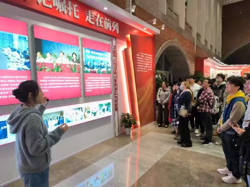 图注:设计工程硕一党支部参观浙江大学二十年办学成果展