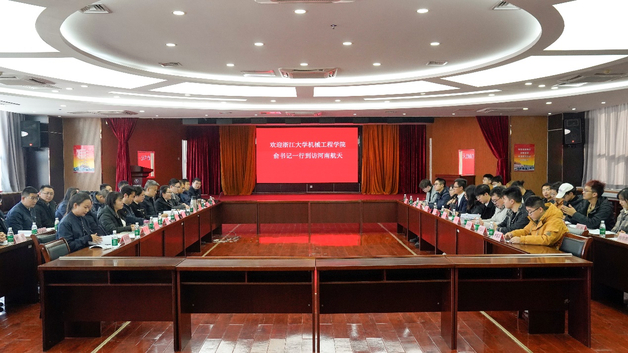 随后双方重点围绕技术研究、人才引进政策等方面开展座谈交流。俞磊着重介绍了浙江大学机械工程学院的院系历史、人才培养以及科研成果等基本情况,他表示,河南航天多年来长期深耕航空航天领域液压气动核心技术攻关,与学院技术研发方向高度契合,是浙大积极引导毕业生建功立业的国家重点战略单位,希望双方进一步加强交流,引导更多优秀学子返乡就业,将个人发展同国家需求结合。河南航天党委委员、副总经理李磊对于浙江大学参访团的来访表示热烈欢迎,表示河南航天是立足航天、忠于职责的重点企业、是允许企业和人才一起成长的成长型企业,希望通过此次交流学习,和浙江大学进一步开展务实合作,找到校企双方的关于人才领域的契合点,培养更多优秀的科技人才,以适应国家重大战略需求。
