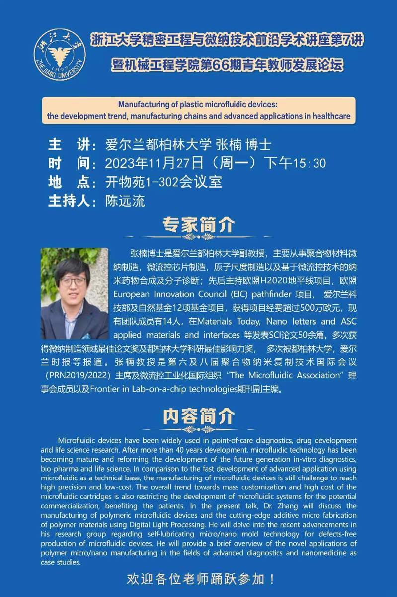 浙江大学精密工程与微纳技术前沿学术讲座第7讲暨机械工程学院第66期青年教师发展论坛