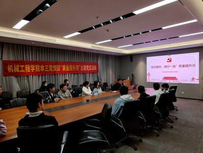 为落实党委组织部《关于开展2023年基层党支部建设质量提升月活动的通知》部署要求,深化学习贯彻习近平新时代中国特色社会主义思想主题教育成效,深入贯彻落实全国组织工作会议精神,通过岗位建功与集体关怀,充分发挥党建引领作用,激励党员不断提升自我、勇当先锋、争做表率,不断推动基层党支部建设,机械工程学院本三党支部于2023年11月17日晚在开物苑1幢302会议室开展“质量提升月”主题党日活动。