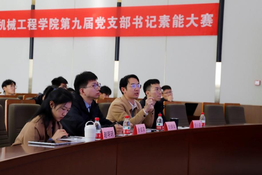 机械工程学院团委副书记刘炳瑞老师、团委副书记余郑霁老师、党员服务中心赵明玥同志、党员素质发展中心倪小昊同志担任本次大赛评委。参加大赛的还有学院全体学生党支部书记、党员代表及党建中心骨干,大赛由党员素质发展中心徐宇航同志主持。
