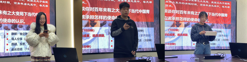 最后,全体成员们以百年未有之大变局下当代中国青年应该承担怎样的使命为话题开展了世界咖啡讨论,在思想碰撞的同时完成了成员间的破冰,其中三位同学作为代表进行了总结发言。