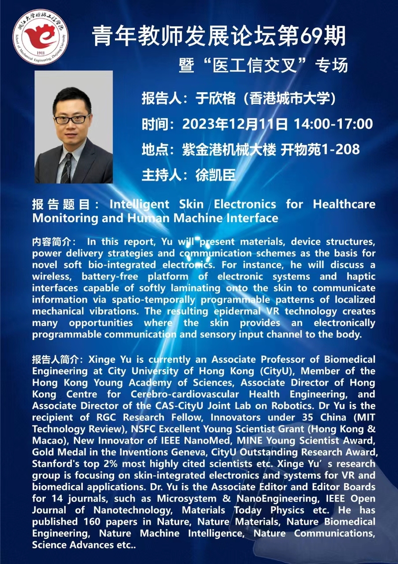 浙江大学机械工程学院第69期青年教师发展论坛暨“医工信交叉”专场