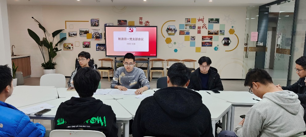 2023年12月8日晚,制造技术及装备自动化研究所硕士研究生第一党支部,于浙江大学紫金港校区开物苑学生之家召开关于李晋宇同志的转正大会和项飞鹤和高岩同志的发展大会,支部副书记华有龙主持会议,支部全体党员与会。