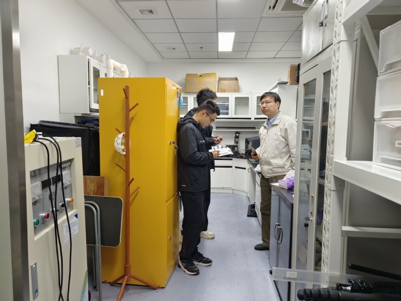 2023年12月7日,机械学院进行了实验室安全检查。微纳所副所长刘昊、全重实验室黄伟迪、实验室安全工作人员张凯、刘健英、陈星辰、学院实验室安全员——党员先锋岗部分同学以及新宇物业工作人员一同参加了检查。 检查组检查了实验室、研究生学习室,重点查看了智能危化品存贮柜的放置和安装情况。 经过前期的安全检查、隐患整改以及学生自我管理的加强,本次检查发现实验室和研究生学习室情况安全隐患数量明显减少。
