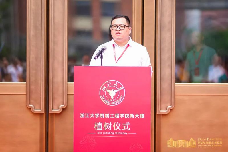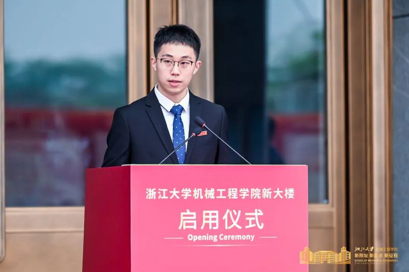 学生代表2022级硕士研究生胡哲哉表达了对新大楼启用的祝贺与母院培养的感恩,他表示,作为新时代的浙大机械学子,将倍加珍惜学院良好的学习环境与科研平台,以高远使命升华青春梦想,开拓建功立业的胸襟和格局,锻造向下扎根、向上攀登的过硬本领,以无悔的青春回馈学校,报效家国。