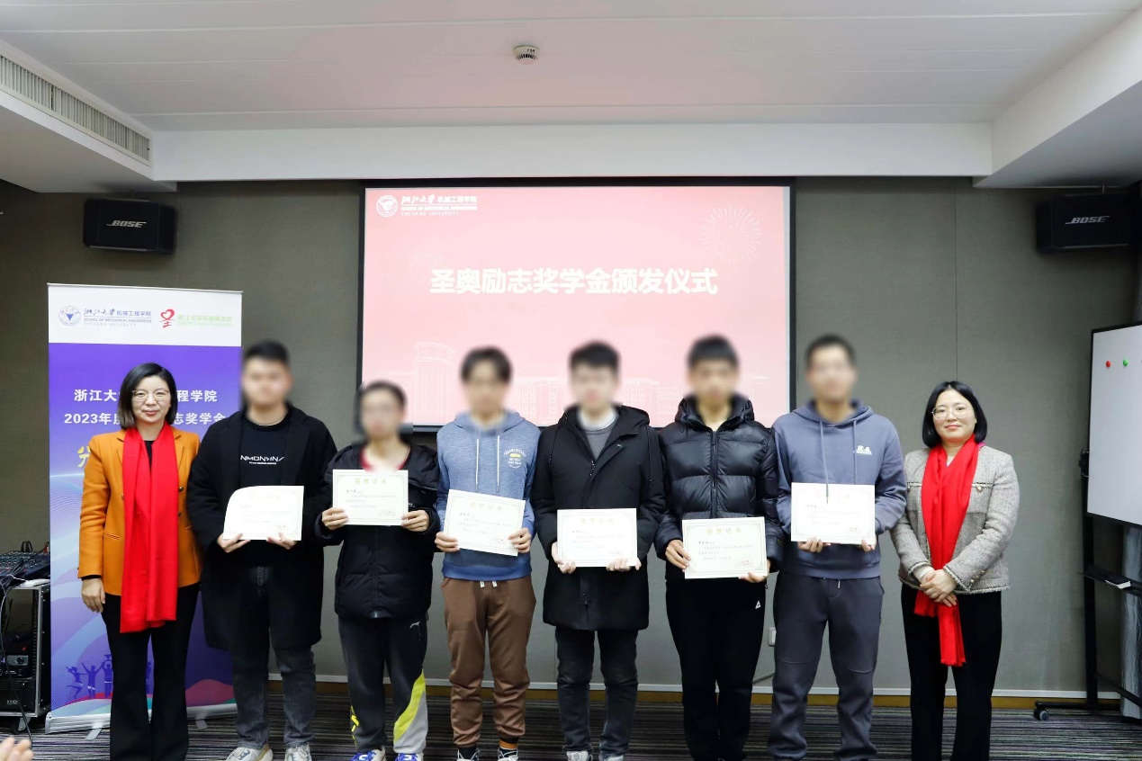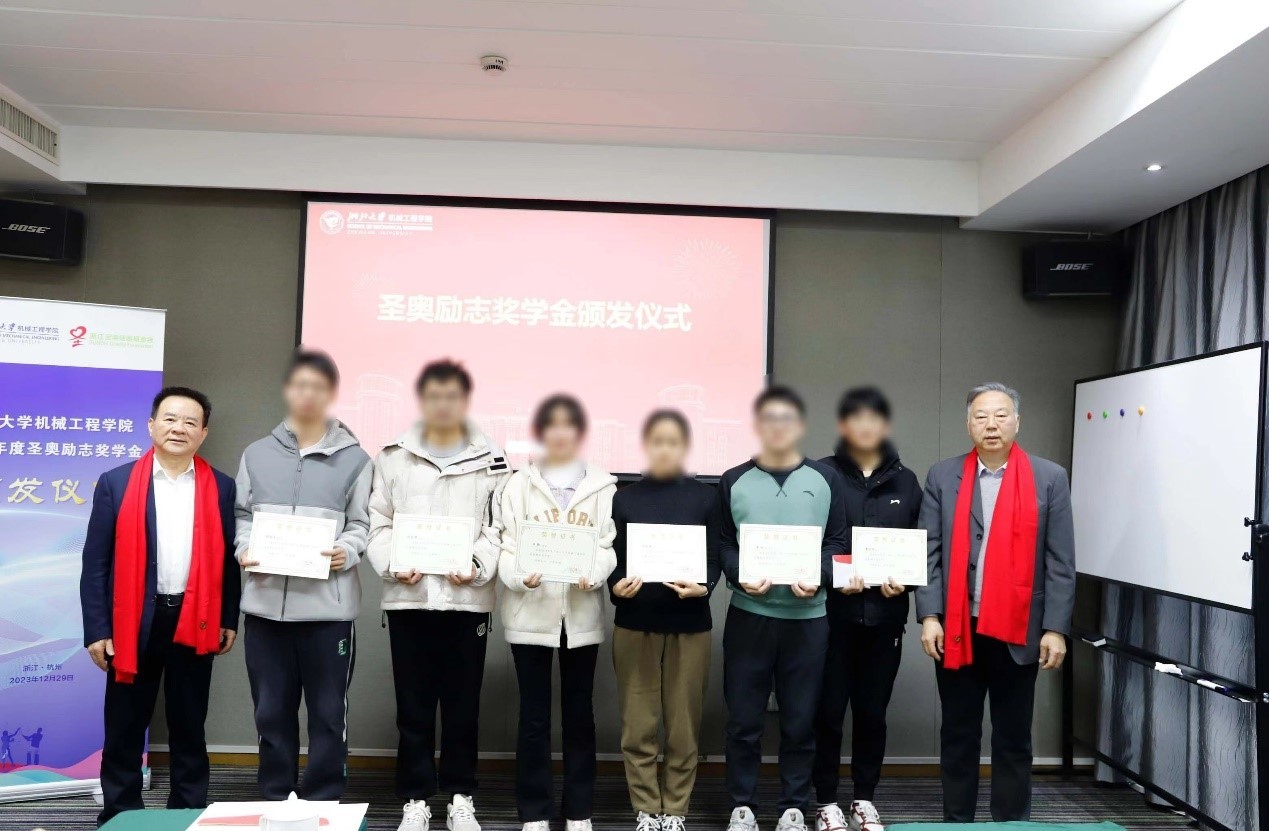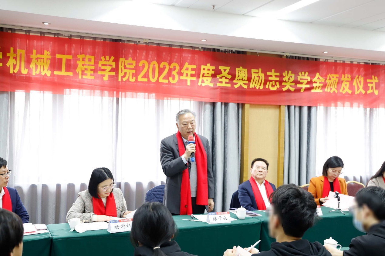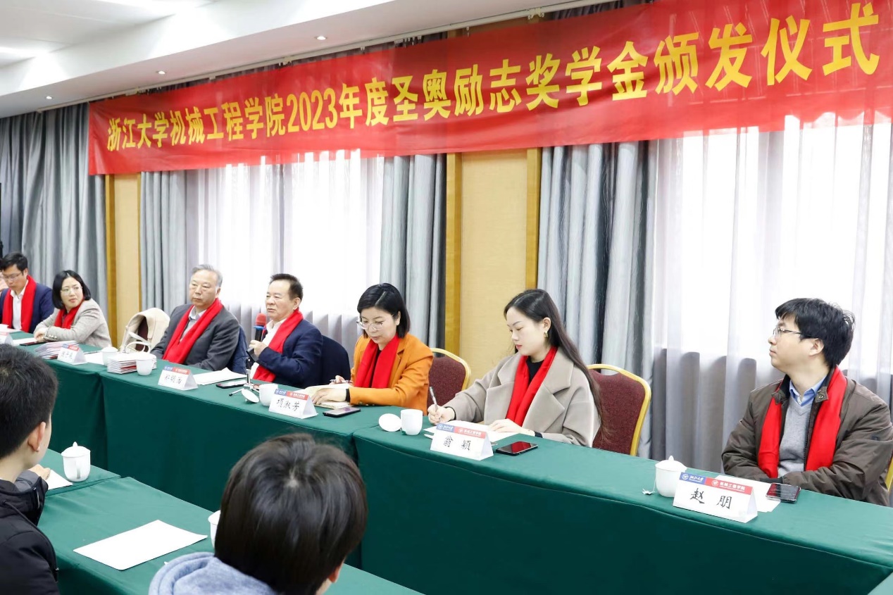 2023年12月29日上午,机械工程学院圣奥励志奖学金2023年度颁发仪式在玉泉饭店成功举行。浙江圣奥慈善基金会创会会长、浙江大学校友郑明治,浙江圣奥慈善基金会理事长杨新妃,浙江圣奥慈善基金会秘书长翁颖,浙江大学发展委员会副主席、党委原常务副书记陈子辰,浙江大学机械工程学院党委书记项淑芳,副院长赵朋,团委副书记李灵、陈宇烽以及获得圣奥励志奖学金的同学等30余人参加仪式。仪式由学院党委副书记俞磊主持。