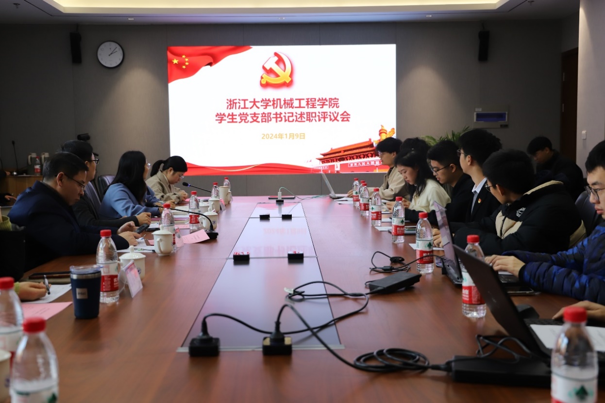 为深入贯彻落实习近平总书记关于党的建设的重要思想,巩固深化主题教育成果,把党支部建设成为推动学校一流事业高质量发展的坚强堡垒,1月9日下午,机械工程学院2023年度学生党支部工作述职评议会在开物苑1幢302会议室举行。学院常务副院长居冰峰,党委副书记俞磊,专职组织员张小平,团委副书记李灵以及全体学生党支部书记参加会议。会议由团委书记金娟霞主持。