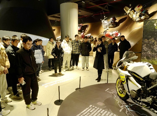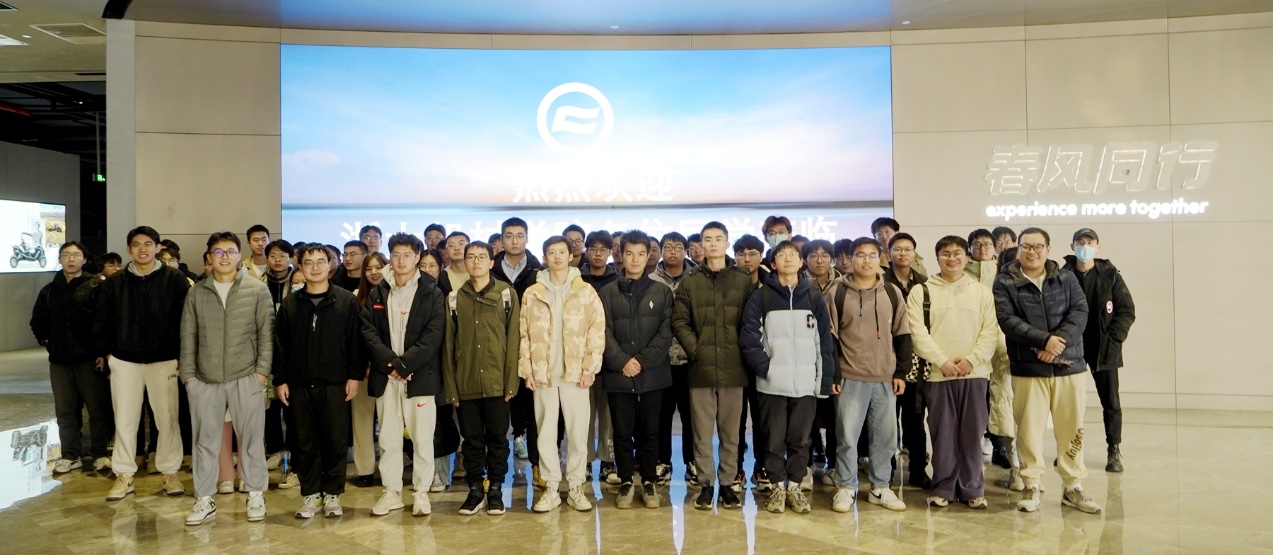 春风动力的线下参访主要分为三个部分,同学们首先观看了春风动力的企业宣传片,来到CFMOTO机车文化展厅参观学习,了解了春风动力近三十年的发展历程,深耕国际市场,逐步将CFMOTO打造成为一个专业高端动力运动装备的国际化品牌。随后,同学们来到春风动力未来工厂指挥中心现场进行交流,学习了数字化信息系统在企业生产实际中的应用,通过数据实时监控整个供应链的运作情况,能够及时发现问题并采取相应措施,提高了整个制造过程的可视化程度。最后,春风动力生产负责人与同学们面对面交流了企业在战略定位、生产制造等方面遇到的问题和未来发展方向,并为同学们在今后科研方向选择上给出了一些建议。