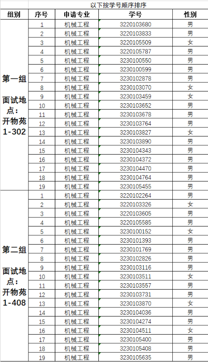 根据《浙江大学本科生主修专业确认办法》(浙大发本〔2016〕109号)文件,本科生院《关于2023级本科生主修专业确认工作的通知》以及《2023级机械工程学院主修专业确认工作细则》等,经学生申请,机械工程学院主修专业确认工作小组对全部申报学生信息材料进行认真审核,现确定面试名单见附件。面试安排如下: