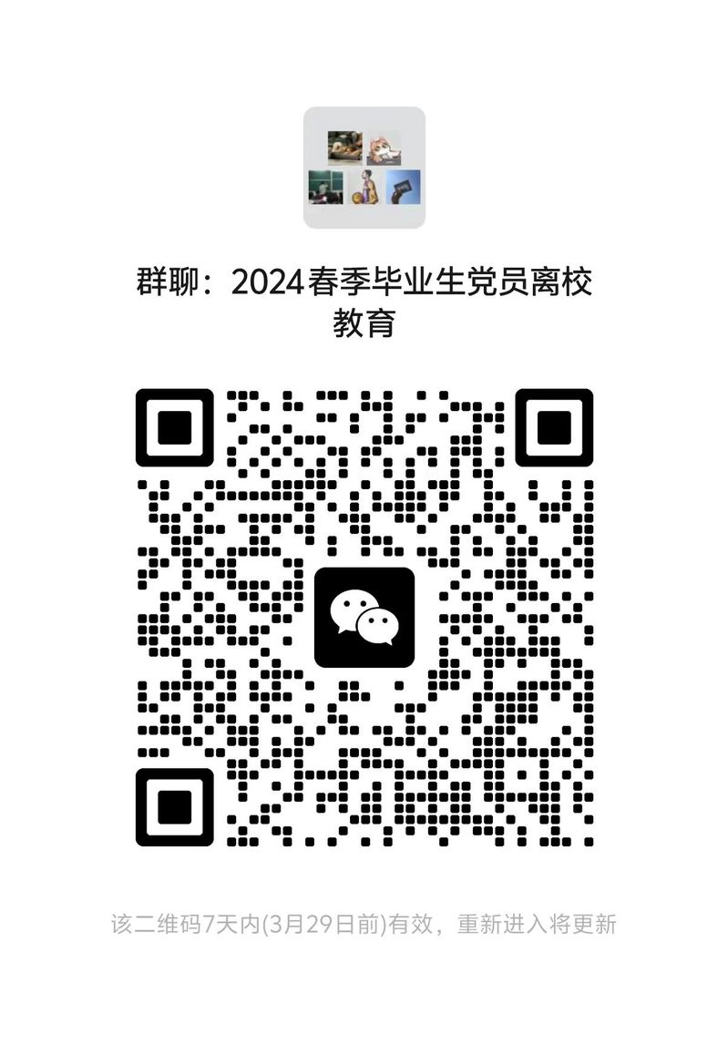 1.请各党支部落实与会人员,提醒春季毕业生党员使用微信扫码进入群聊,后续通知将发布在微信群内。群二维码如下: