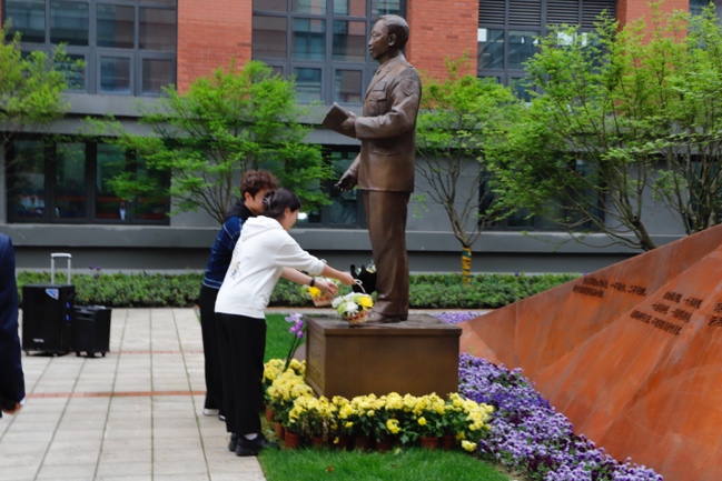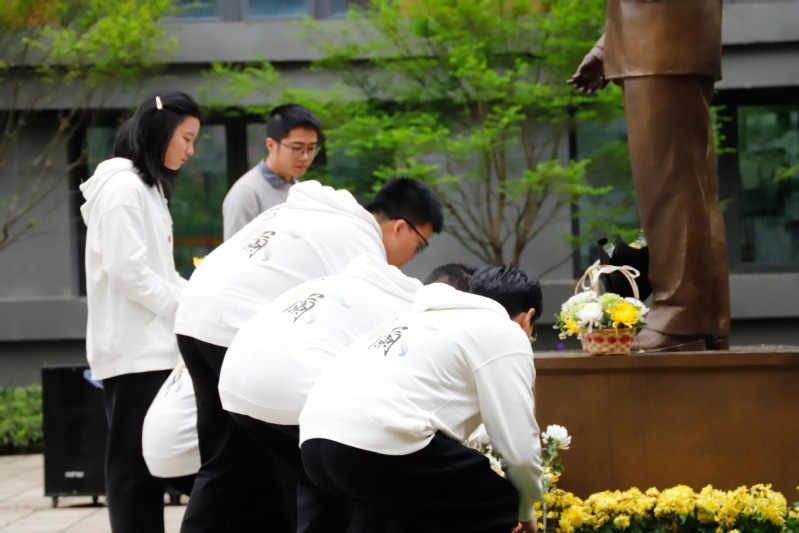 师生代表刘炳瑞、王科心向林俊德院士雕像敬献花篮,并在雕像前深情鞠躬,寄托着师生们对林俊德院士等浙大先辈们深切的缅怀与崇高的敬意。