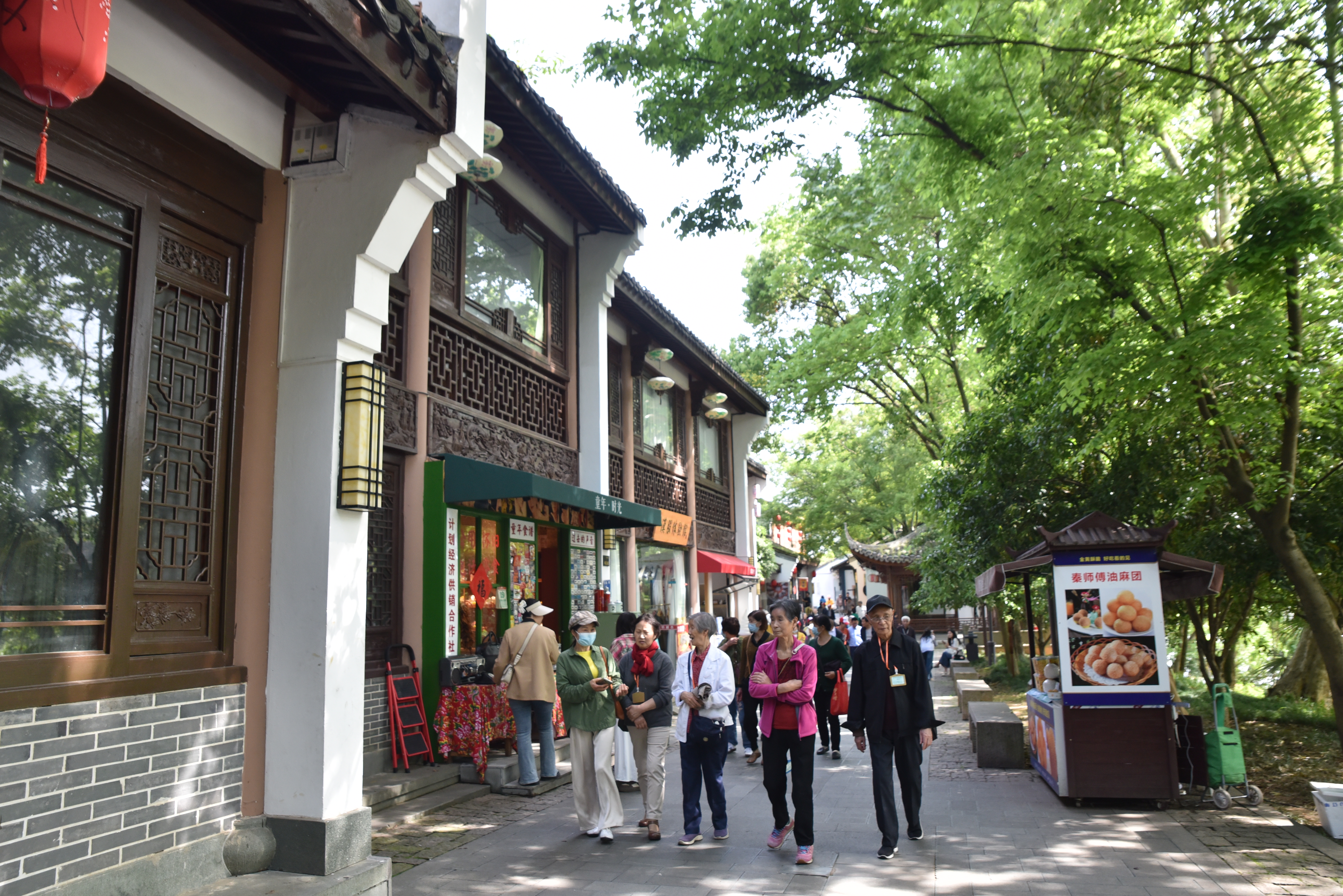 午饭后,团队来到历史悠久、人文荟萃的西施故里景区。景区内,古色古香的建筑与如诗如画的风景相得益彰,引人纷纷驻足观赏,拍照留念。在游览的过程中,老教师们时而品读诗词字画,时而参与互动体验,怡然自得。