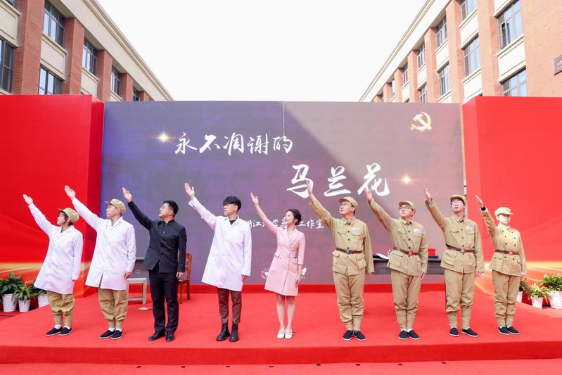 浙江大学马兰剧组带来情景演绎《永不凋谢的马兰花》,同学们用深情的讲述与精彩的表演,娓娓道来那段感人至深的历史故事,用浙大三代师生为国铸盾的故事,将我们带回了那个充满挑战与希望的年代,生动阐述了“艰苦奋斗干惊天动地事,无私奉献做隐姓埋名人”的马兰精神。